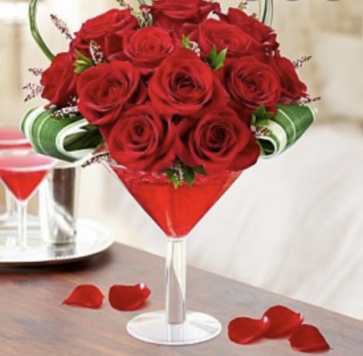 Love In Bloom: Elegant martini glass arrangement with beautiful roses